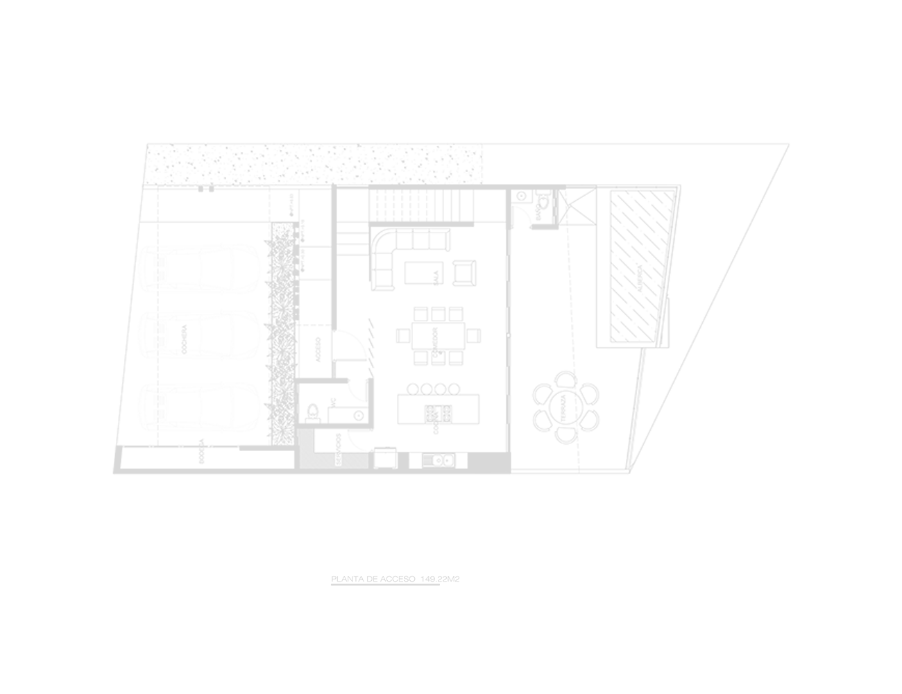Villa with three levels, garage for three cars, access through an intermediate level to a social area, terrace, bathroom on the terrace and pool, master bedroom with walking closet and bathtub. Two bedrooms with bathrooms and closets.