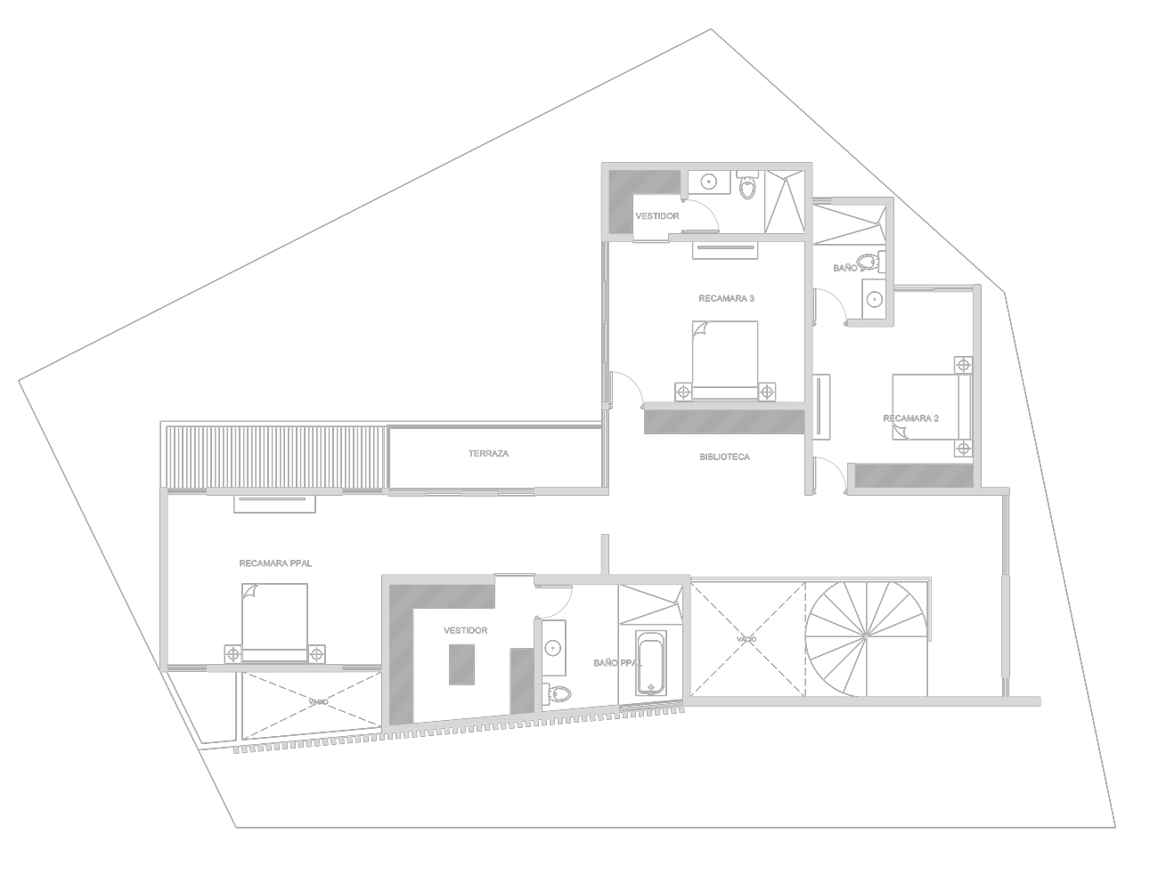 Villa on 2 levels, finished in apparent concrete with a sober and brutalist design, helical staircase, garage for 3 cars, terrace with pool and own bathroom, library area, master room with walk in closet, terrace and bathtub.