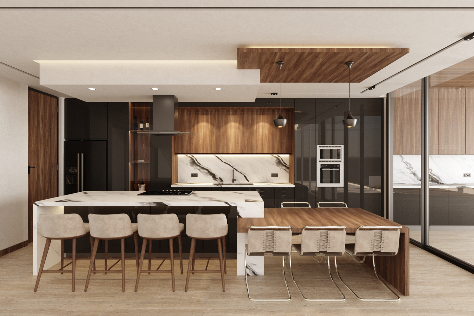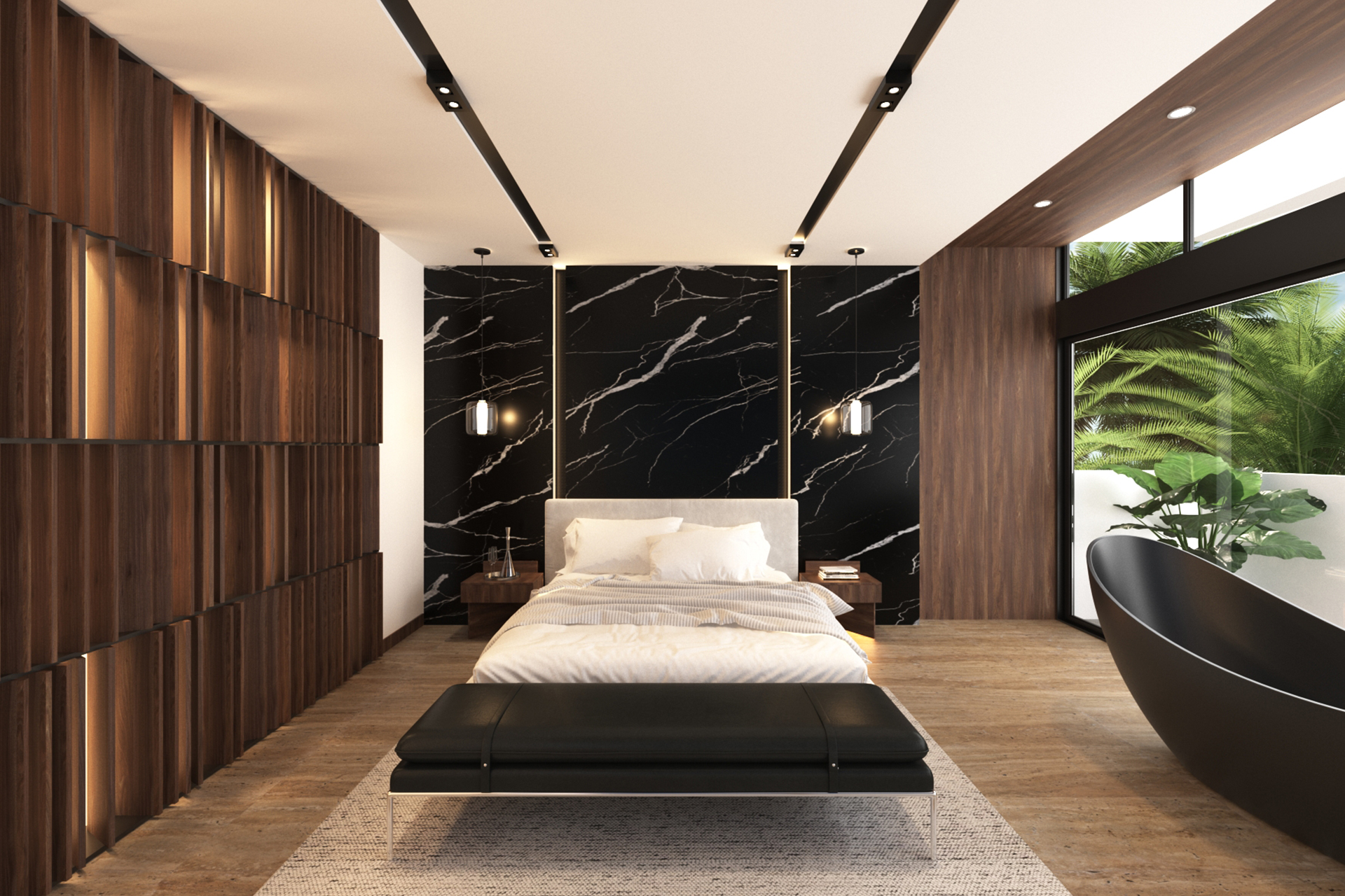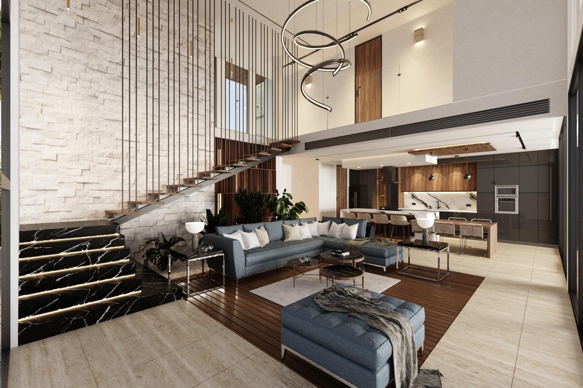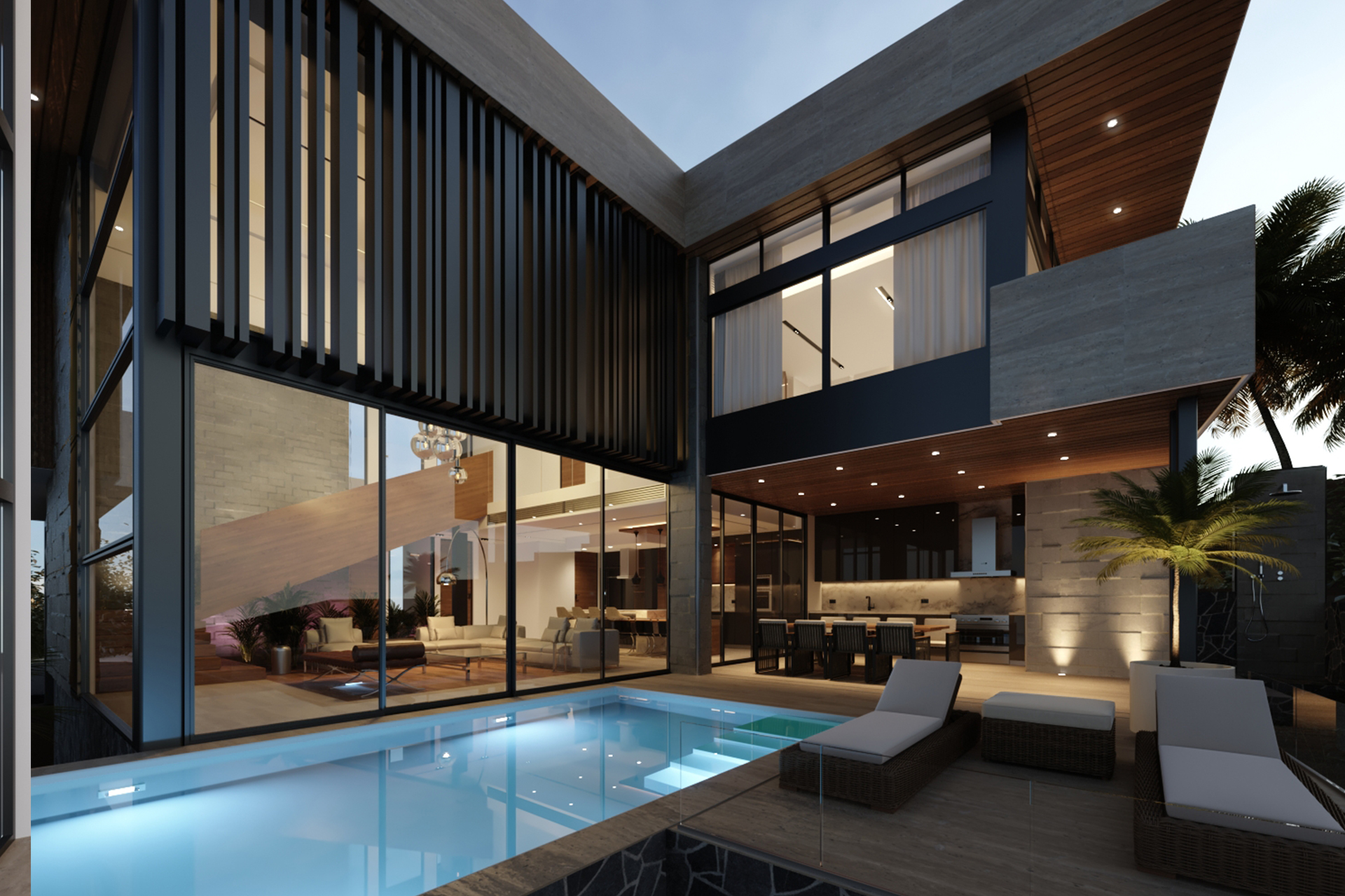 2 level villa, 2 carS garage, terrace with pool and own bathroom, double-height living room, master bedroom with walk in closet and bathtub.
