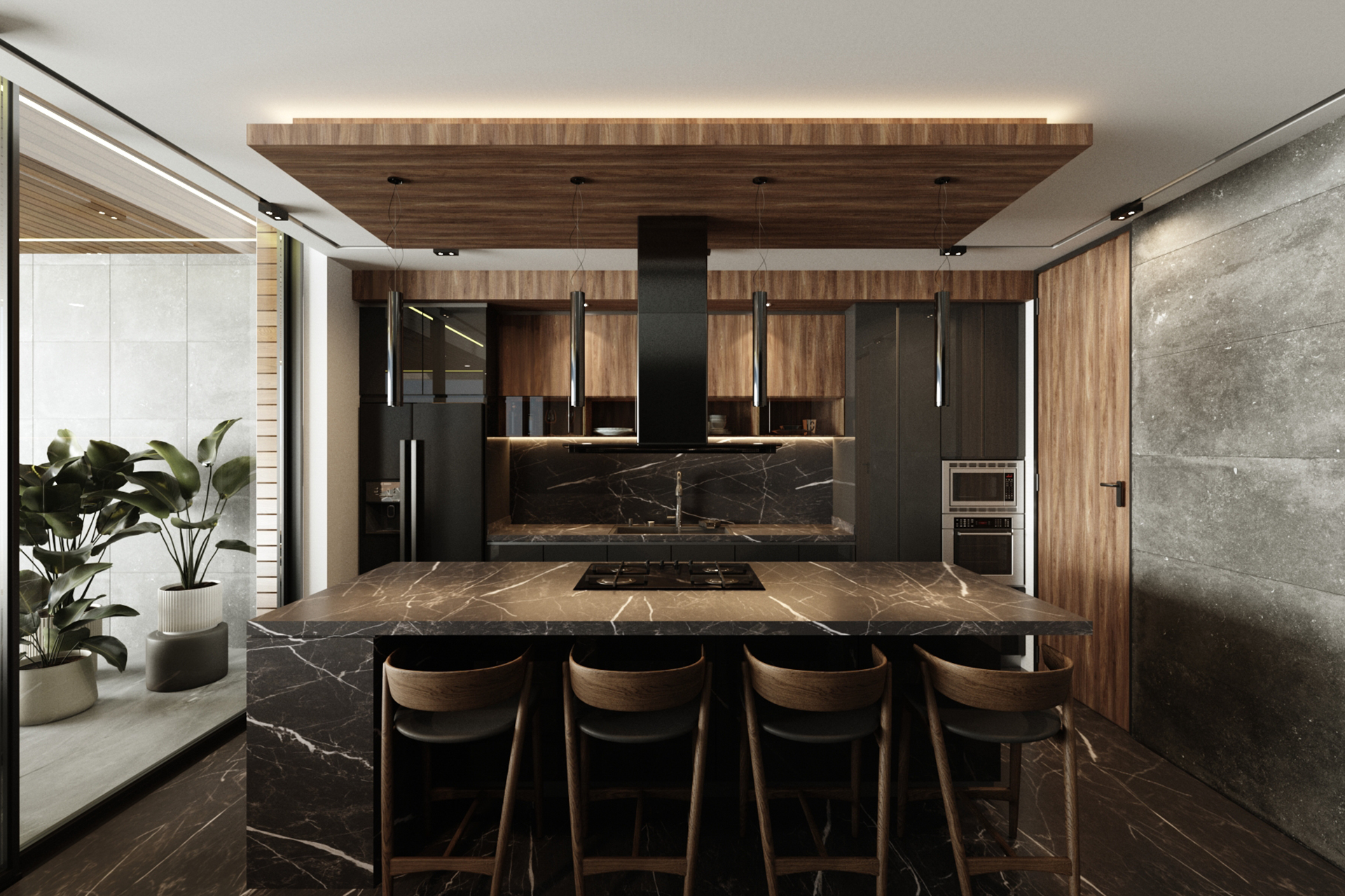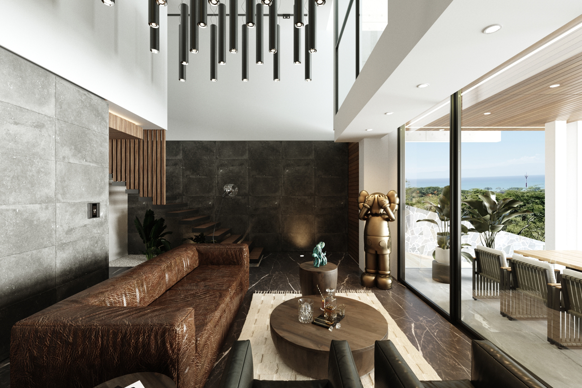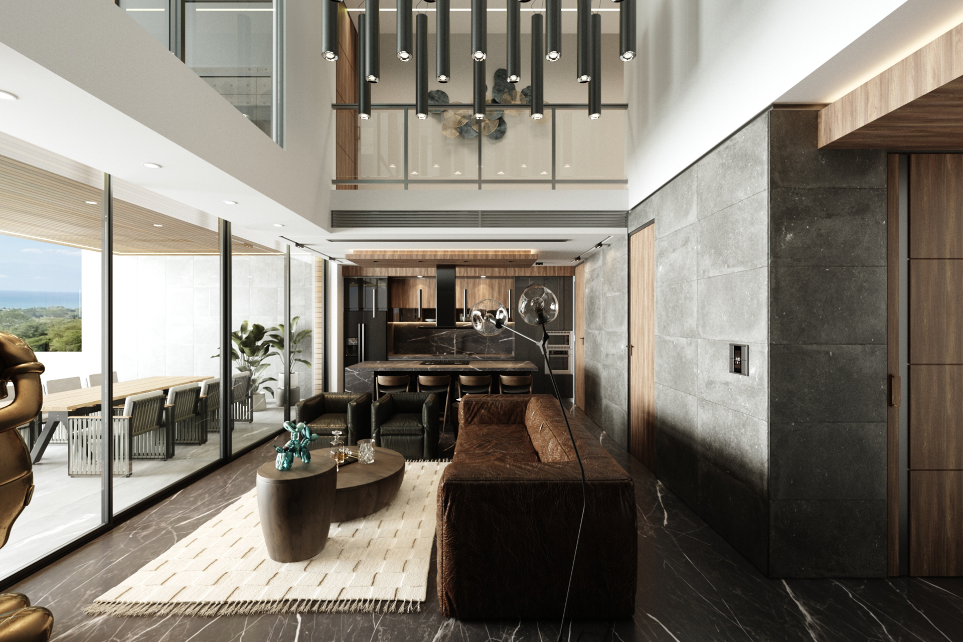 Villa two levels, parking for two cars, double height living room, terrace with bathroom and pool, master bedroom with walk in closet.